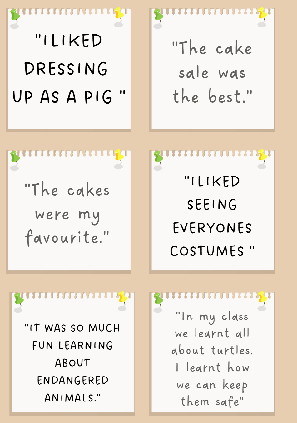 Our reception class set the whole school a challenge to take part in 'Wear in Wild'! This involved the children dressing up as an animal or wearing animal print. KS1 and EYFS then had a cake sale after school and raised £86 to sponsor an endangered animal.