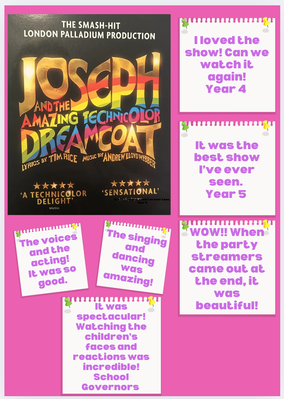 In January our KS2 children went to watch 'Joseph and the Amazing Technicolor Dreamcoat' at the Marlowe Theatre in Canterbury.
